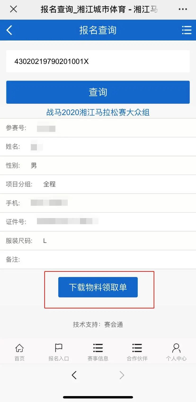 登录赛事官网点击“报名查询”